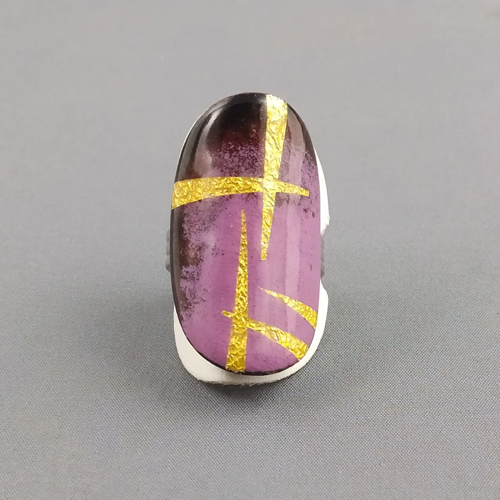 Avec cette technique ancestrale, de fines feuilles d'or pur sont délicatement ciselées directement sur l'émail, créant des motifs graphiques et lumineux.